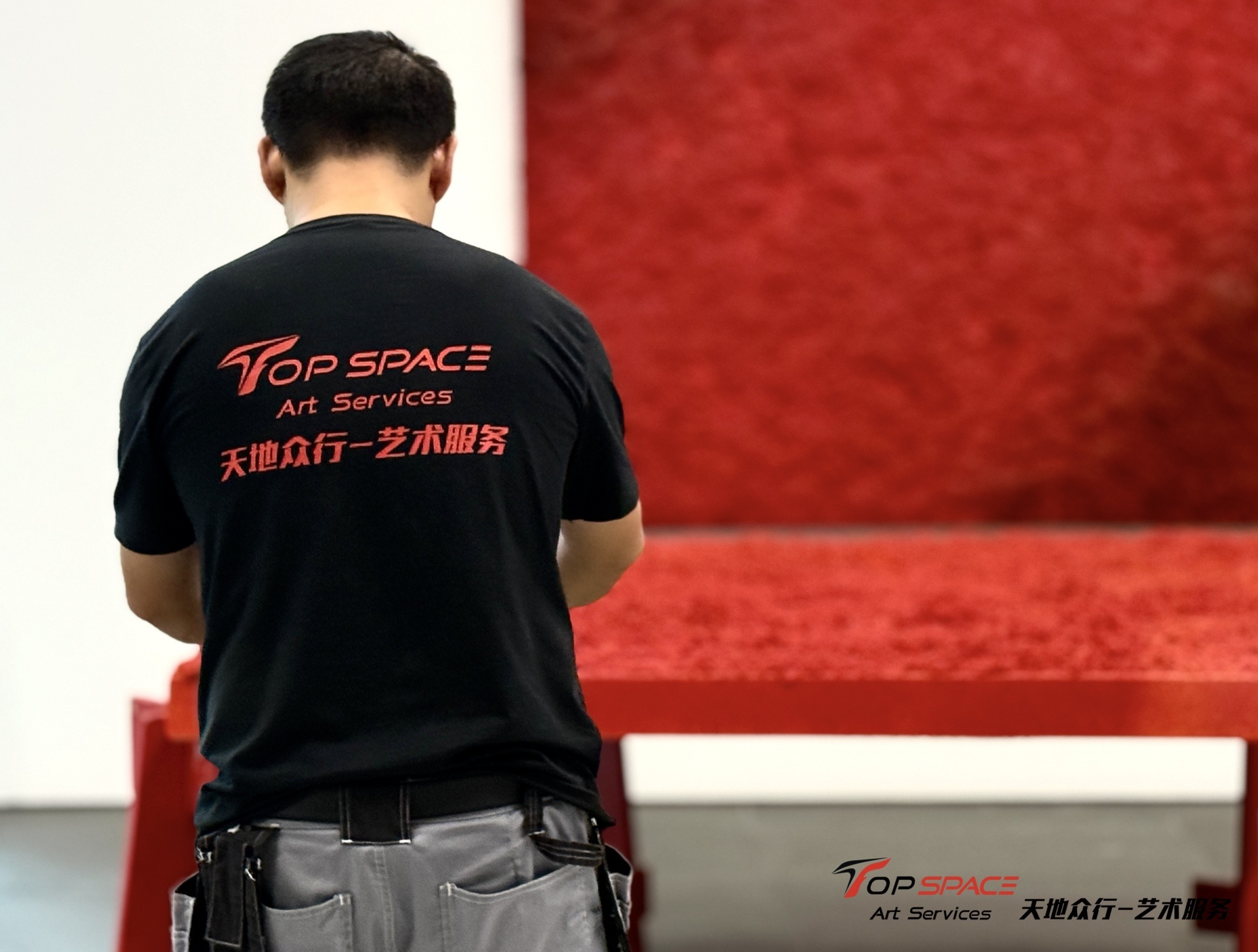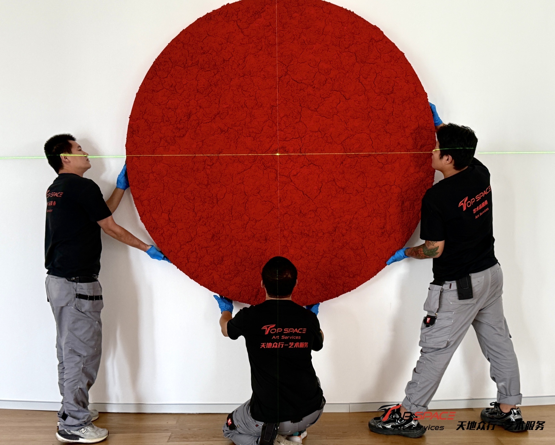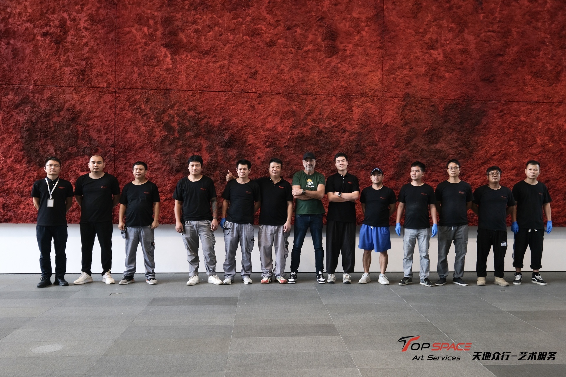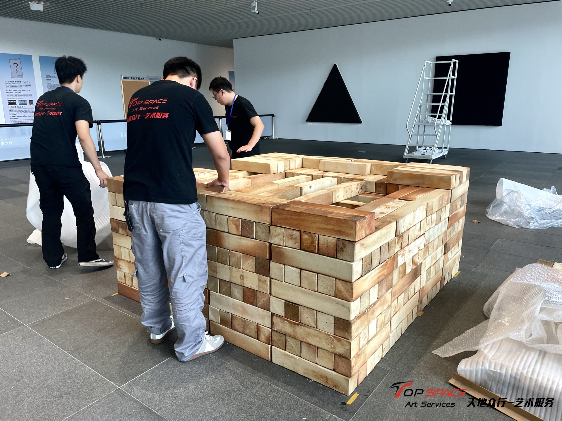 此次展出艺术家博斯科·索迪的作品,直接取材于自然,诸如粘土、火山岩、木屑等等天然材质。这些由不同材料构成的作品,相比于常规的架上绘画作品或者雕塑作品更容易出现磨损、剥落等情况,所以在包装、运输以及布展过程需要更加的小心谨慎,提前对作品材质有充分的了解,避免对作品造成不可逆的损伤。
