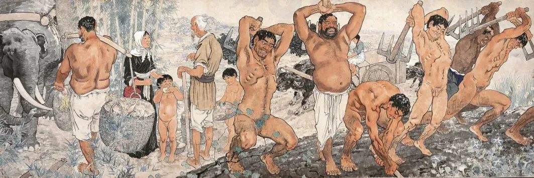 愚公移山,纸本水墨,144 × 421 cm,1940