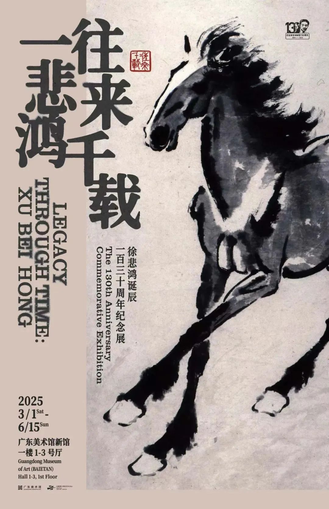 由广东美术馆和徐悲鸿纪念馆共同主办,北京文泽时代文化艺术有限公司协办的“往来千载一悲鸿:徐悲鸿诞辰一百三十周年纪念展”于2025年2月28日在广东美术馆新馆开幕,于3月1日中午12时正式对公众开放。