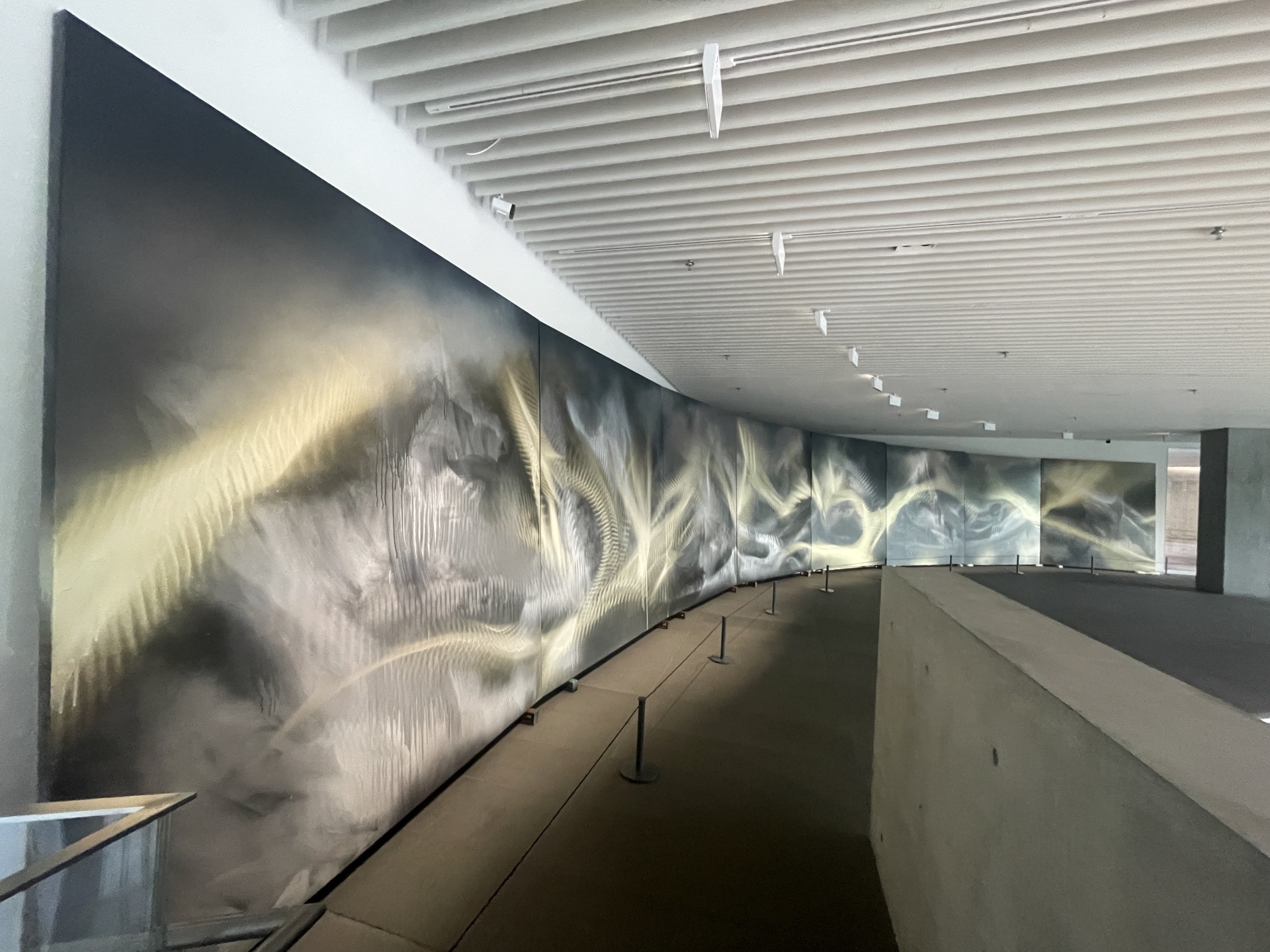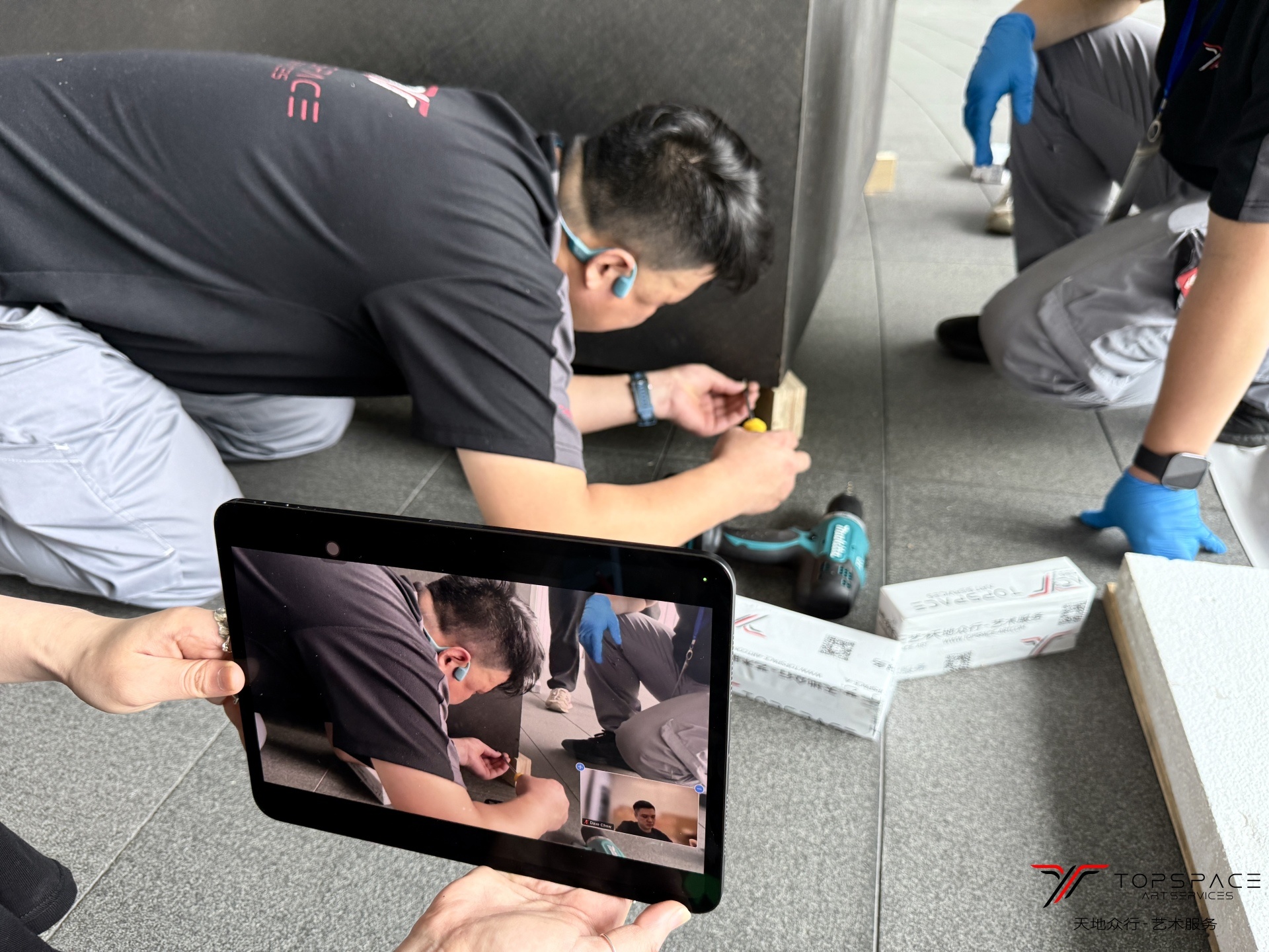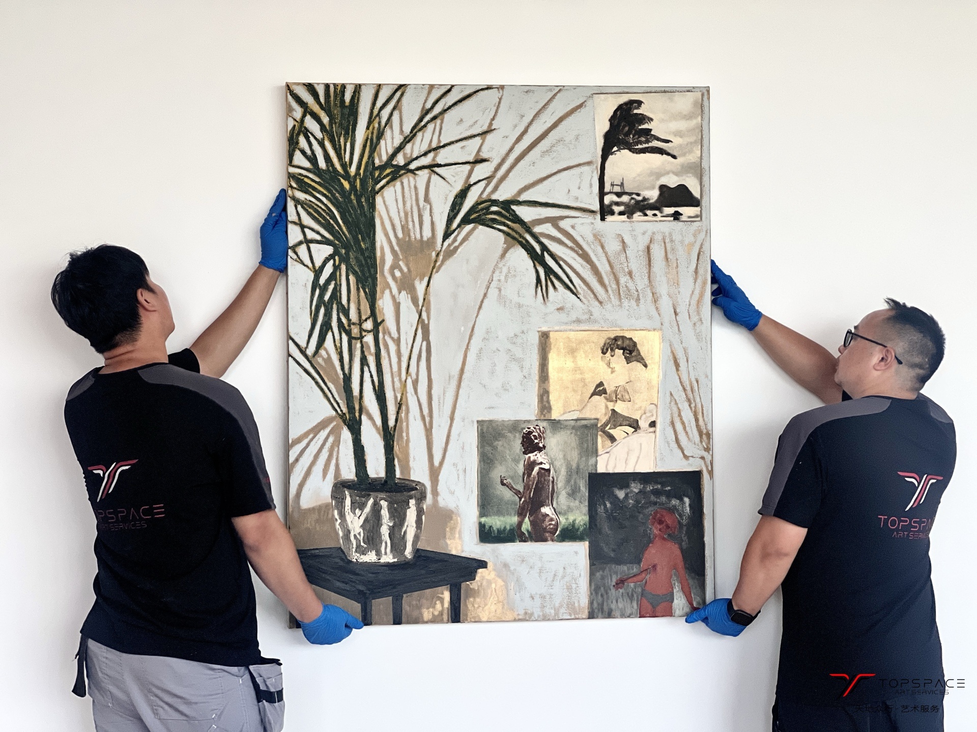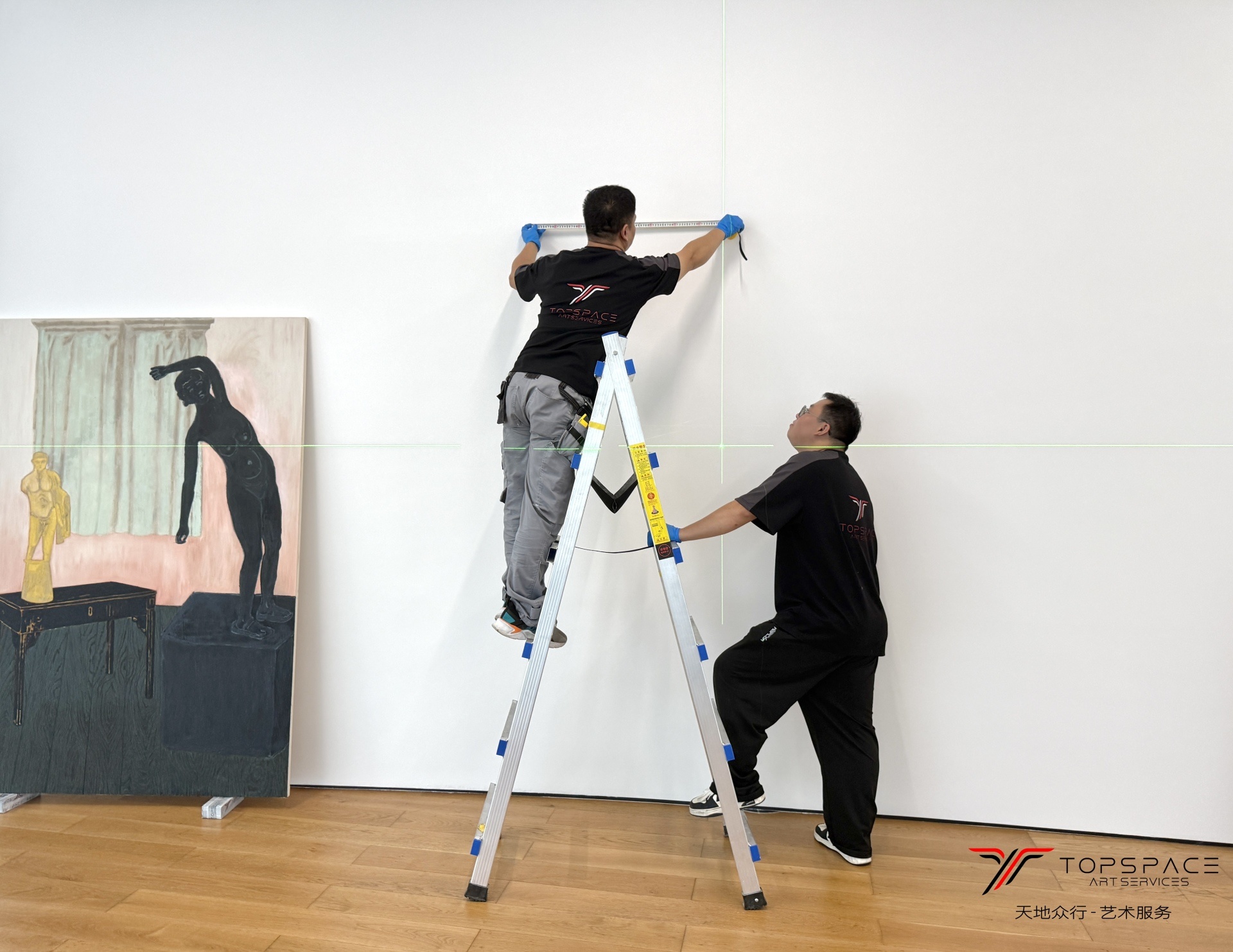 本次项目由天地众行全程提供艺术服务。展出作品中包含一幅8米长的超大型绘画作品,从作品的定制包装到运输,以及最终的进场布展,每一个环节都需要前期精确地测量和规划才能保证作品最后的安全上墙。这些都是基于天地众行团队积累的丰富的艺术服务经验,只有对整个过程的足够熟悉,并且在前期做好充足的筹备,才能确保艺术服务的顺利实施。