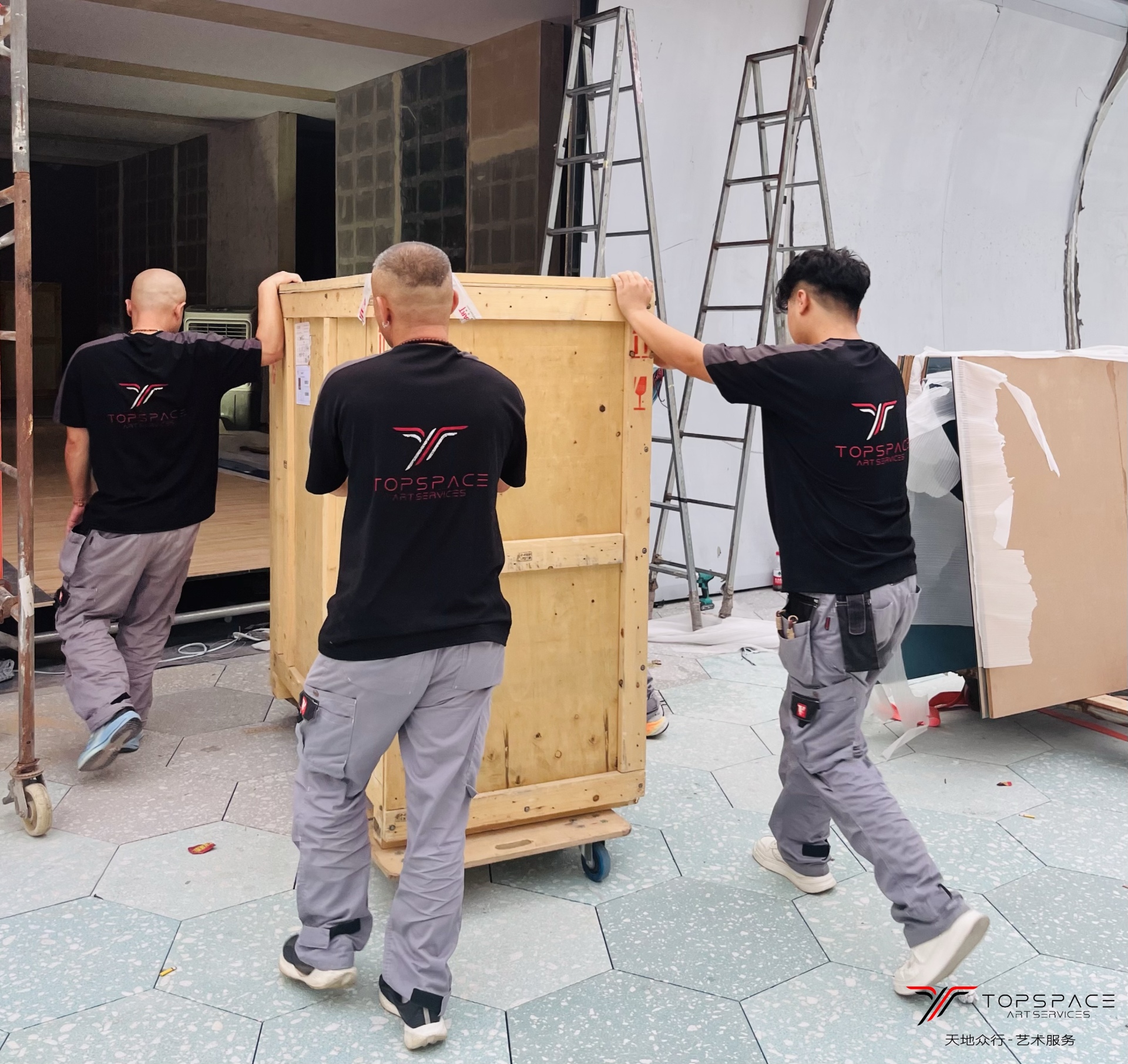 本次展览由天地众行全程提供艺术服务。服务涵盖:艺术品的包装与运输、保税区恒温恒湿仓储空间、以保税形式进行展览清关以及布撤展等服务。作为空山基在中国西南首展,天地众行团队从接手项目起便专注对待,留心每一处细节,力求展览可以顺利呈现给观众,可以让观众更好的感受到展出艺术品的魅力。
